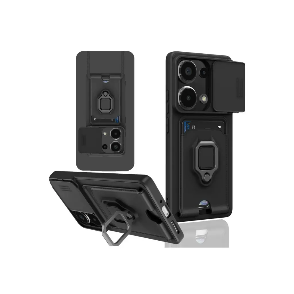 Xiaomi Redmi Note 13 Pro 4g Kılıf Zuma Kartvizitli Yüzüklü Silikon - Siyah