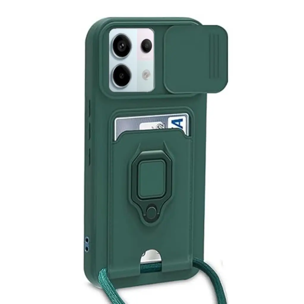 Xiaomi Redmi Note 13 Pro 5g Kılıf Zuma Kartvizitli Yüzüklü Silikon - Yeşil