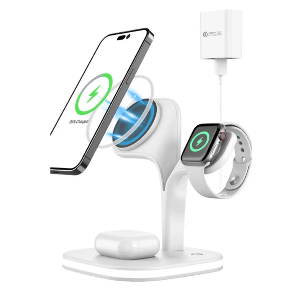 Phone, AirPods, iWatch ve ek Qi uyumlu cihazları aynı anda şarj ederek verimliliğinizi artırır.