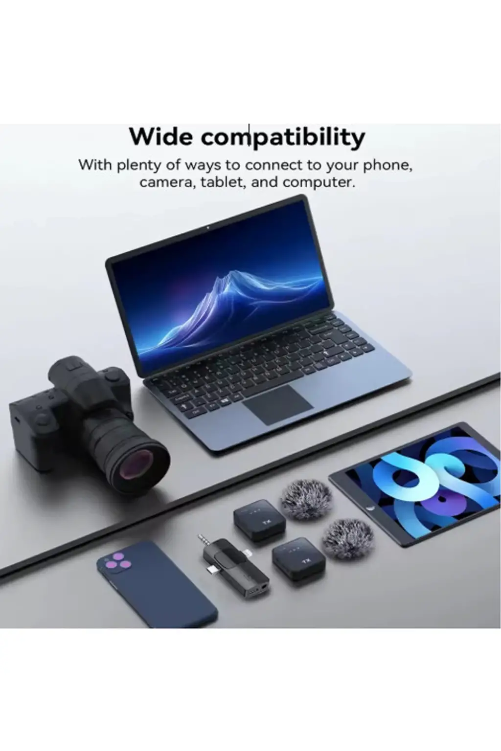 Hareket halindeyken video kaydı ve podcasting için mükemmel olan kablosuz yaka mikrofonumuzla kusursuz bağlantıyı deneyimleyin.