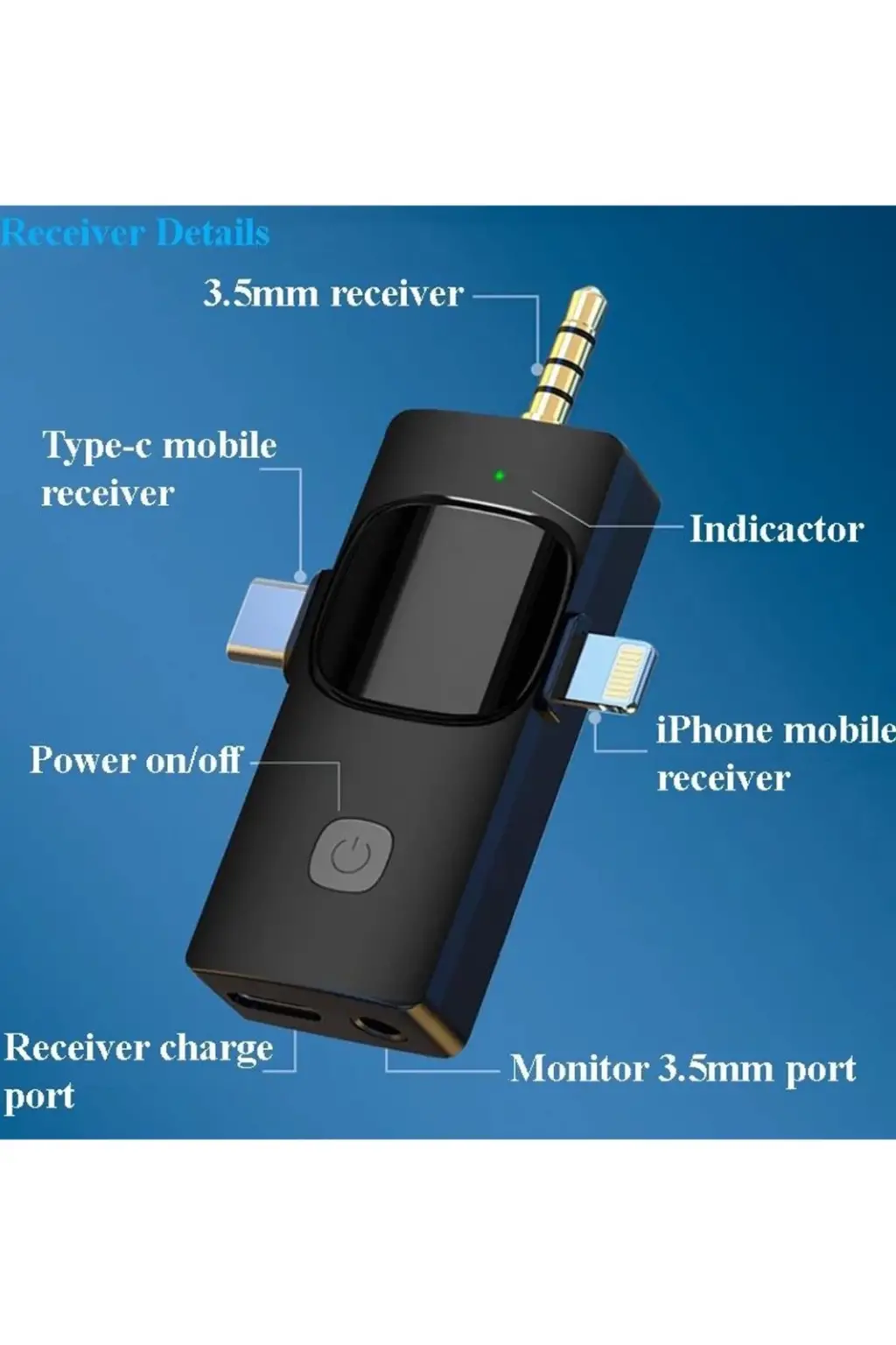 Mikrofon alıcısı 3.5mm kulaklık gerçek zamanlı dinlemeyi destekler.